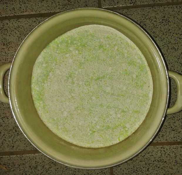 Cuando ralladura de jabón en trozos pequeños mezclar thogeder todos y colocarlo en un frasco grande.