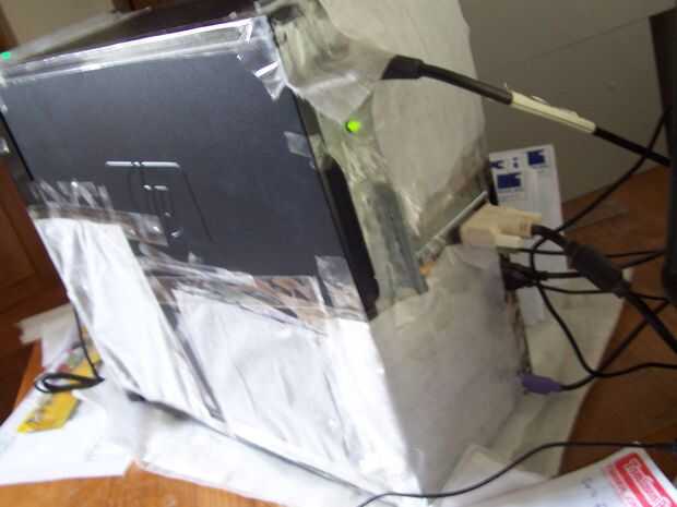 Quería limitar la ingesta de polvo para el futuro... Con tela creo que hace un filtro de polvo razonable, mientras que - en mi opinión - sigue permitiendo el ventilador tarjeta PCU y gráficos obtener suficiente aire fresco (para la ubicación de mi equipo en Reino Unido más frío). No el más ordenado de trabajo... cubre las áreas de entradas/salida de aire de computadora.