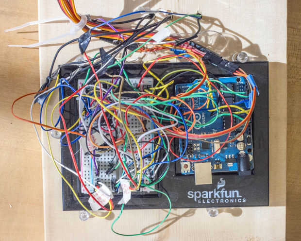 Consejo: De nuevo los potenciómetros con algún material para mantenerlas adheridas firmemente al lado del conglomerado. (También use arandelas, no seas perezoso como estábamos!)