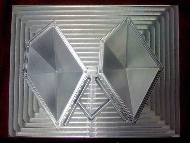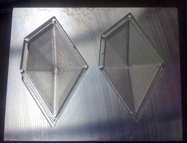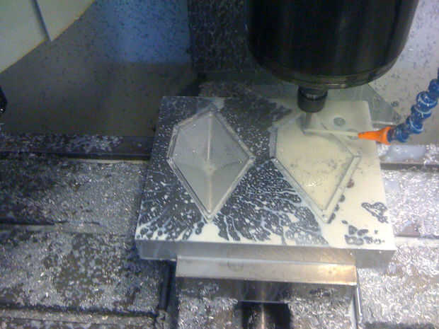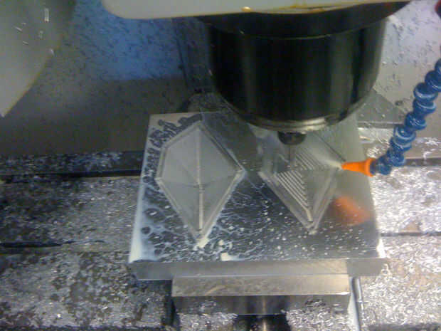 Tuve algunos problemas con el proceso de fresado CNC y aprendió muchos buenos consejos en el camino. Aprendí que es mucho mejor ir más despacio y luego más rápido, esto puede evitar la rotura de brocas de fresado delicado y controla la suavidad de la superficie. También aprendí que es mucho mejor que deje el programa entero de Gibbs de principio a fin como apposed parando a mitad de camino y tratando de instalar otra vez continuando su programa de fresado de la media. Esto aumenta la posibilidad de error, un error que cometí fue miscalculating mi XY compensaciones por 0,1", que cuando inadvertido hasta que la máquina de fresado en el lugar equivocado y dañado la mitad de mi molde más allá de la reparación.