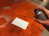 Aquí utilizamos el primer plástico transparente, rociar desde una distancia de 30cm y hacer trazos limpios.