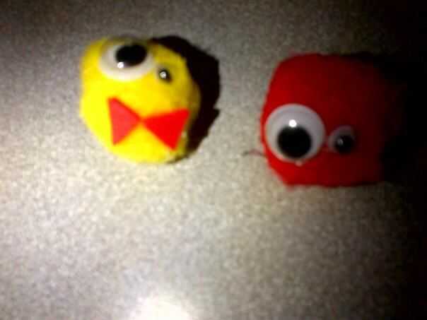 Esta es una manualidad muy sencilla y rápida para los niños hacer en Semana Santa!Lo que se necesita:pom pom amarillo 12 ojos de Googley1 naranja sentí pico1 naranja sentí piesPegamentoPaso 1:1. en primer lugar, le pega dos ojos saltones en el pom po