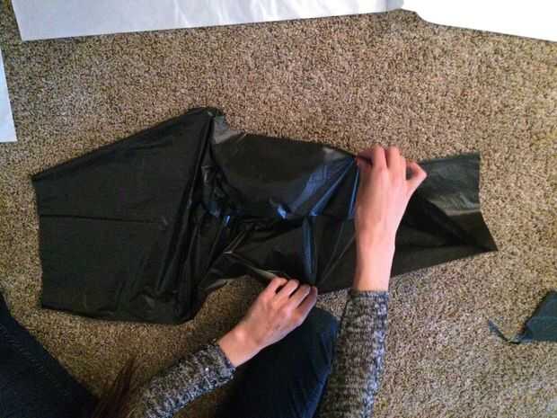 Hola chicos! Estamos oficialmente en el mes de Halloween así que decidí hacer este disfraz de Halloween realmente asequible. Todos que van a necesitar son algunos rollos de plástico de color negro, naranja y blanco. Para que sea más barato decidí usa