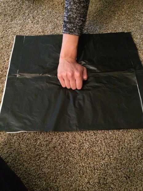 bien, se trata de cómo hacer una bolsa de mensajero con una bolsa de basura que no se rompe fácil.Paso 1: Materiales y herramientas Fuentes:1 bolsa de basuraClaro Packageing cinta/cintaHerramientas:TijerasPaso 2: Corte de bolsillo #1 Cortar la bolsa