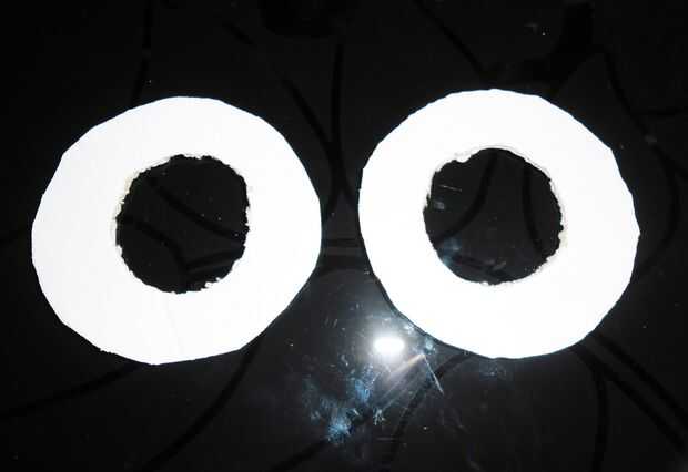 Para hacer estos pompones, necesita lana, cartulina y tijeras.  Para empezar, corta 2 círculos idénticos con un agujero en el centro de cada uno. El otro círculo debe ser aproximadamente 12-13 cm (5 pulgadas) de diámetro y el agujero debe ser aproximadamente 7cm (2.5 pulgadas) de diámetro.