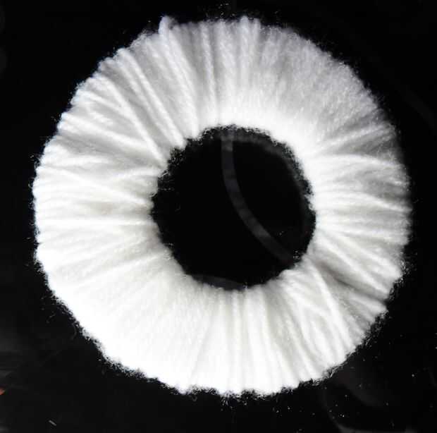 Envolver la lana alrededor del anillo. Asegúrese de que la lana es gruesas varias capas. Las más capas de lana que hay en el anillo, será el más denso el pompón.