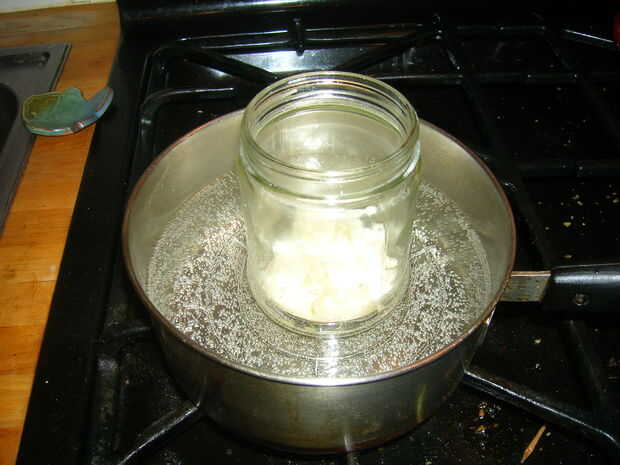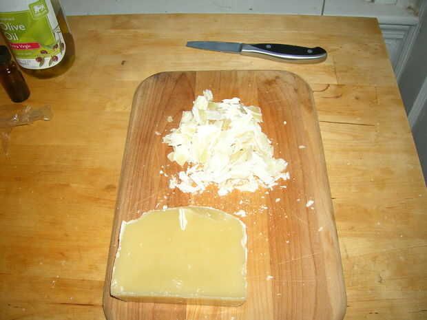 Yo picado por la cera así derretirían más rápido. Tenía derecha lo mismo. Aviso legal seguridad: No cortarse con un cuchillo. cera de abejas es bastante difícil. Trate de una moción de "afeitado".
