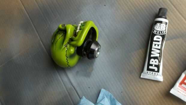Tener en cuenta que no soy JB soldadura este pomo de cambio permanentemente a la palanca de cambio.