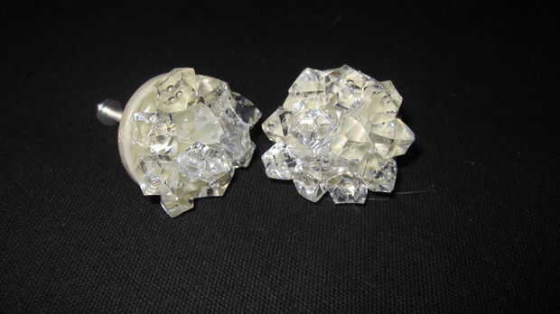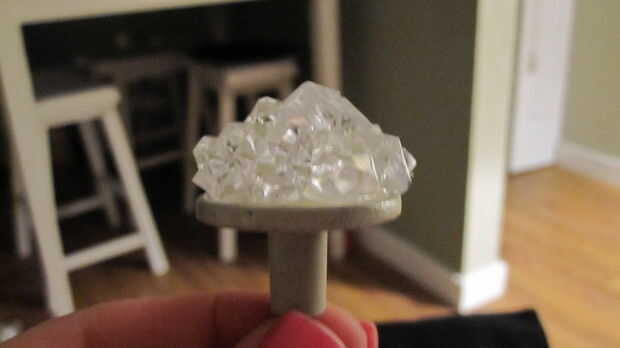 -Usando tu pistola de pegamento caliente para pegar cristales a tirones.