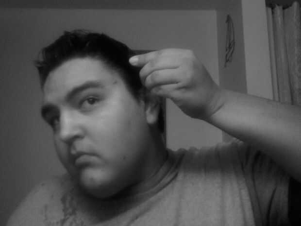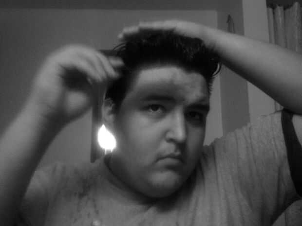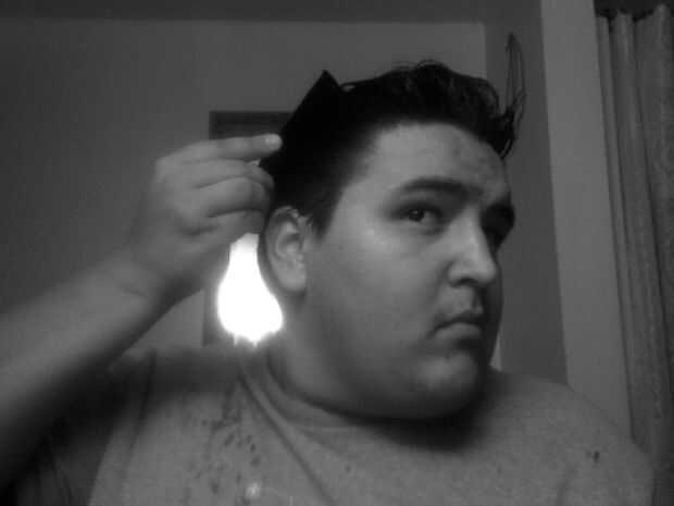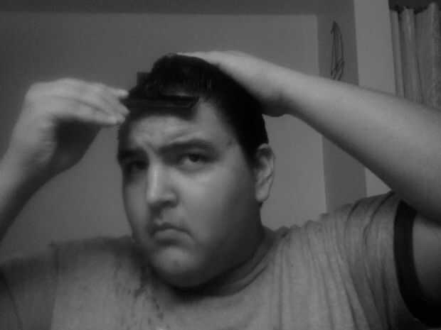 Después tienes al poof de pelo en el frente, peina hacia abajo de los lados. Tenga cuidado de no peinar hacia abajo la parte delantera al mismo tiempo.