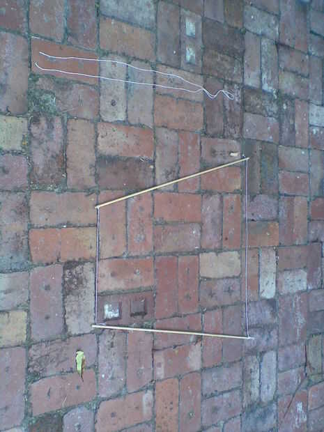 atar un extremo de la cuerda a la parte inferior de la pieza de forst de dowling y el otro extremo a la otra pieza de dowling ambos aprox. 2cm de la base.