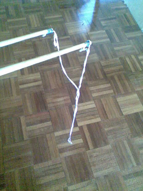 Yo aconsejaría usando la cinta para garantizar a los cuatro pedazos de cadena en el dowling para no salir. y también la cadena en el botom de la dowling es merly para propósitos de práctica que usted puede sacarlo que en el futuro simplemente mía tenían allí a detenerme de fabricación de la cuerda superior enseña y hacer estallar las burbujas.