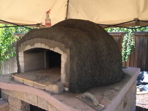 La cúpula es significaba tener en 3 de manta de fibra para aislarlo y luego se cubre con 1 en de perlita/vermiculita mezclada con cemento. Puede utilizar perlita o vermiculita. Es similar en sensación al relleno del bolso de haba. Utilizado en este caso como más aislamiento y preparación para el recubrimiento final. En mi caso es una mezcla de 7-1 de concreto a perlita y de vas. He comprado esta perlita en Home Depot. Es sobre las 18.00 horas por bolso.