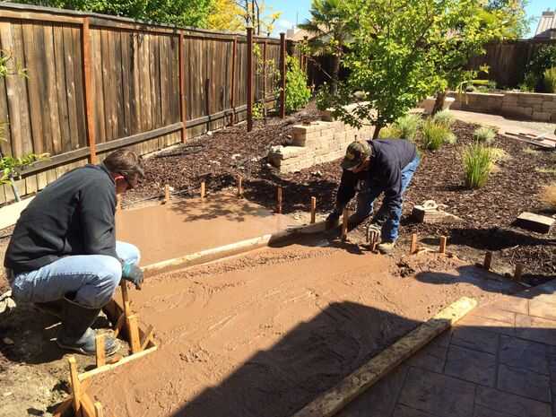 OK como se puede ver la losa se realiza. Antes decía que la losa de cemento fue de 5 pulgadas de espesor. En mi caso, fue de 5 pulgadas en el centro y a 6 pulgadas y cuando cumpla con el borde. Cavado una zanja pequeña en los bordes de mis formularios para hacerlo más grueso en el borde.