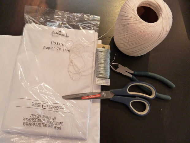 Paquete de papel de seda. Se necesita aproximadamente 20 hojas (me encanta el look de colores diferentes y hará el papel de tejido impreso aún fresco. Hice uno con un diente de sabuesos impresión y se veia impresionante... pero por el bien de este i'ble, vamos a seguir con blanco clásico)