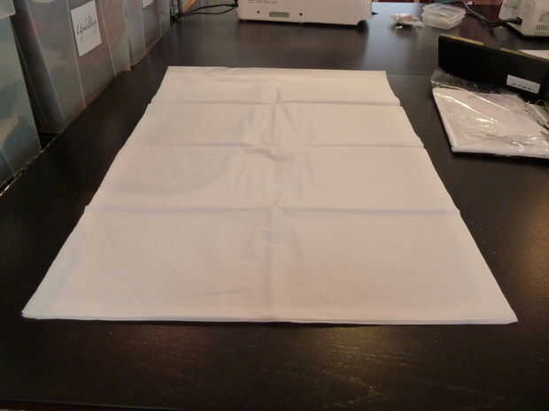 Este paso puede ser fácil ligera sobre, pero por experiencia, he encontrado que uno de los más importantes. Al abrir el paquete del tejido, asegúrese de que usted endereza y alinea para arriba tan agradable como sea posible. Que incluso y alineados harán pliegues limpiador que encontrarás en los siguientes pasos.