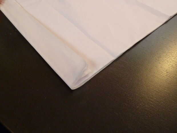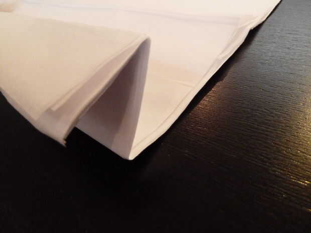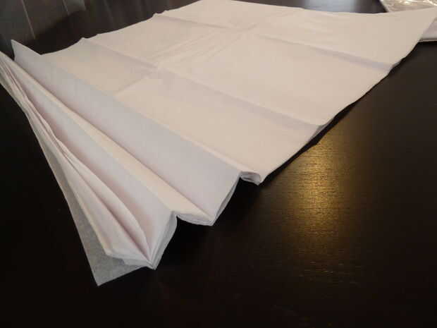 Tomar sobre una pulgada o pulgada y media de papel desde la parte inferior y dóblalo sobre el resto del papel. Asegúrese de que el pliegue fold es agradable y limpio, y que te Ponga mucha presión para garantizar que todas las 20 capas de tejido con un pliegue limpio.