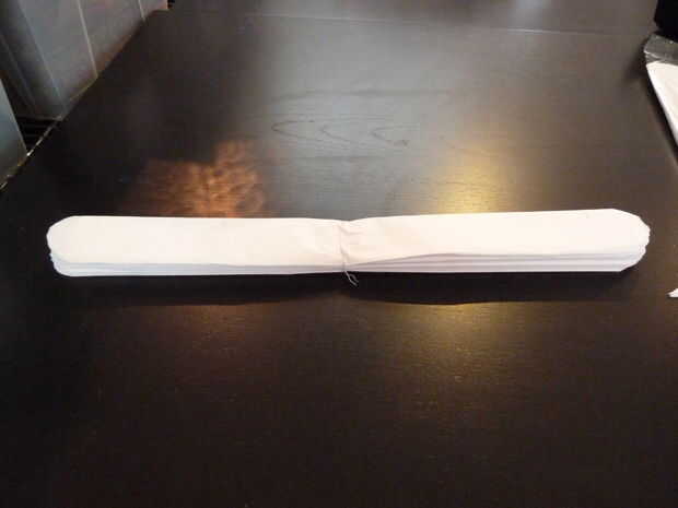 Si son muchos paquetes de envío, o rutinariamente armar bolsas de regalo, tienes que lidiar con papel de seda a granel de gran tamaño. Como se puede ver en la imagen, estas pilas grandes, difíciles de manejar no encajan bien en un estante o mesa. ¿La