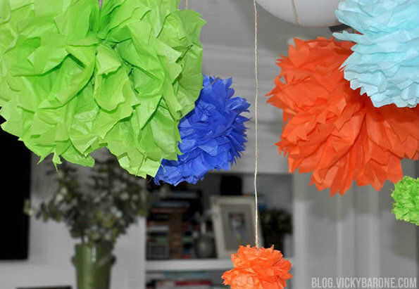 Materiales:Pompones de papel de seda (mismos tamaños)Colores: Amarillo, verde y púrpuraPaso 1: Ver este Video y aprendeTe enseñaremos una técnica simple y fácil que se puede utilizar en la decoración de Mardi Gras!Mira el video y háganos saber cualqu