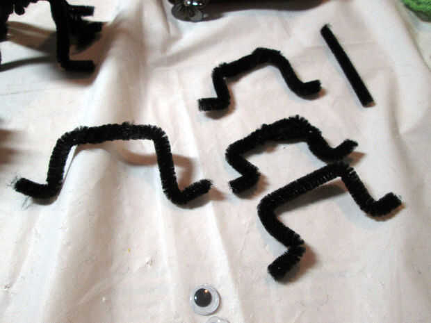 Corté cada limpiador de pipa en al menos dos piernas, y no desperdiciar ninguno de la izquierda sobre las piezas, envuelve dos de los más pequeños pedazos de limpiapipas juntos para hacer un par de las piernas. (Véase las fotos).