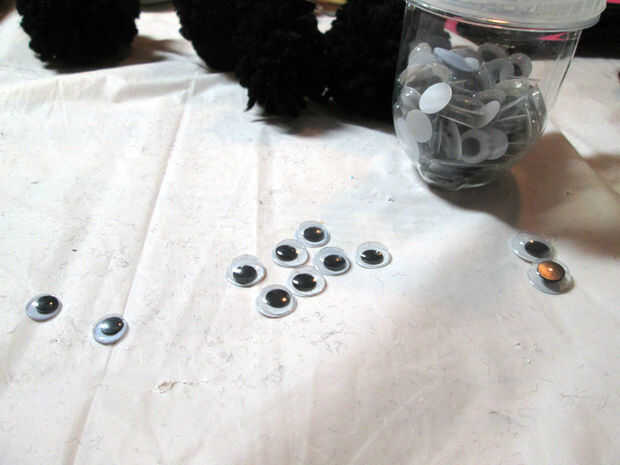 Los ojos googly estaban pegados, para asegurar que coordina con la ubicación de la colocación de la pierna.