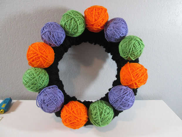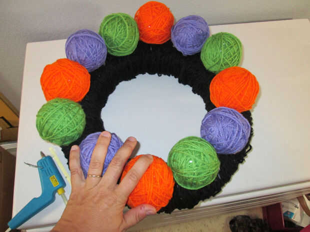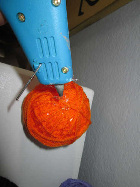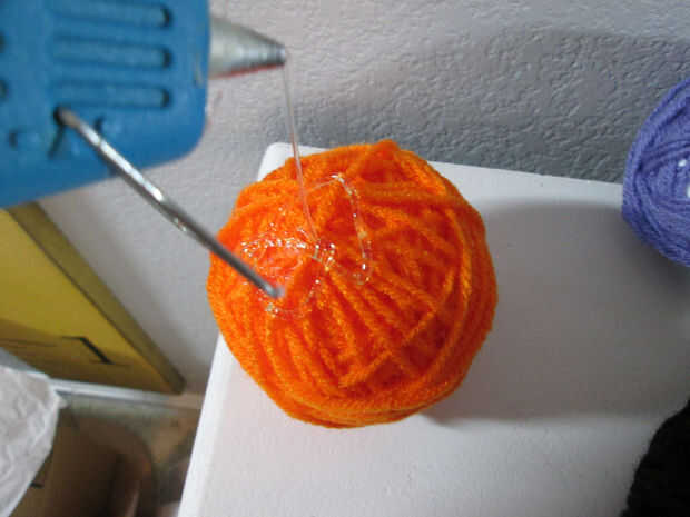 Usé mi pistola de pegamento de temperatura baja para pegar las bolas de hilado en el mejor lado de la corona.