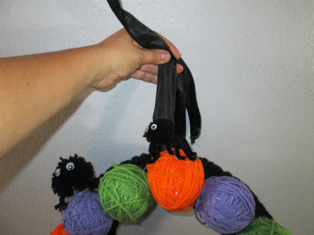 Me arrancaron la cinta entre dos de las bolas de hilo y había atado un lazo simple en la parte superior.