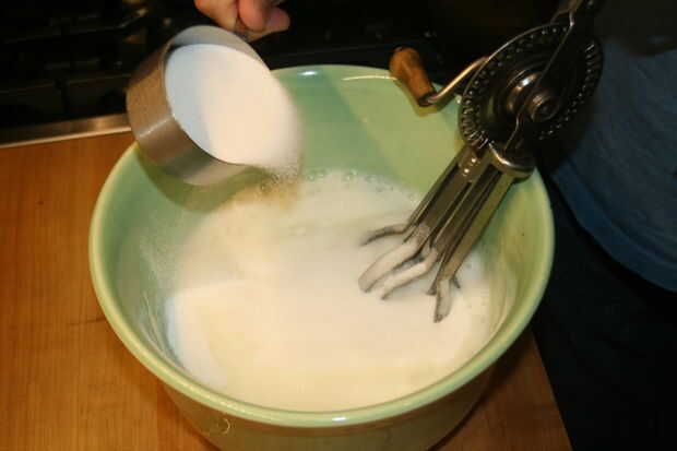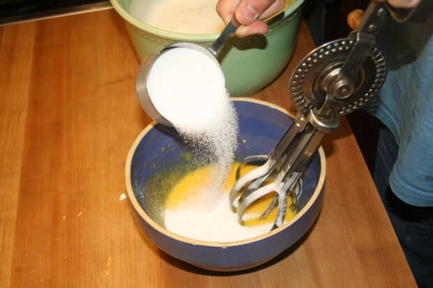 Añadir el resto del azúcar (1/2 taza) y batir bien.