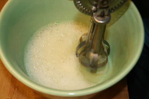 Añadir 1/2 taza de azúcar y batir otra vez hasta que se mezcle bien.