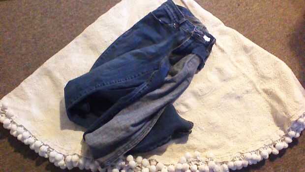 • Una pierna de chatarra jean funciona muy bien, pero cualquier tejido puede utilizarse como collar.