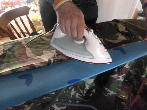 Abrí el paquete, planchar las costuras y esquinas planas (fue doblado extrañamente en el paquete), puso hacia fuera y luego córtalo por la mitad para hacer dos mantas. Usé el cerrado final, entonces ya tenía tres lados bien cosidos para mí. No tengo una mesa lo suficientemente grande para que sobre todo está trazado en el piso.