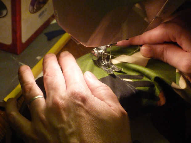 Estos luego llené con el primer conjunto de 3 onzas de granos. Comencé las marcas 19,5 cm con un simple alfiler en la costura de la marca. Pero pronto descubrí que el peso de la manta (sobre todo después de dos o tres filas) tiró todo hacia un lado en la máquina de coser. Me la tiza hacia fuera otra vez y para cada fila marcó una línea a. Era todavía difícil como tiró pero al menos pude ver cuando se va fuera de línea.