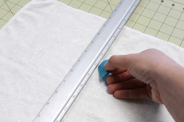 A continuación, dibujar una segunda línea perpendicular a la primera línea, dividiendo la toalla en cuatro secciones iguales.