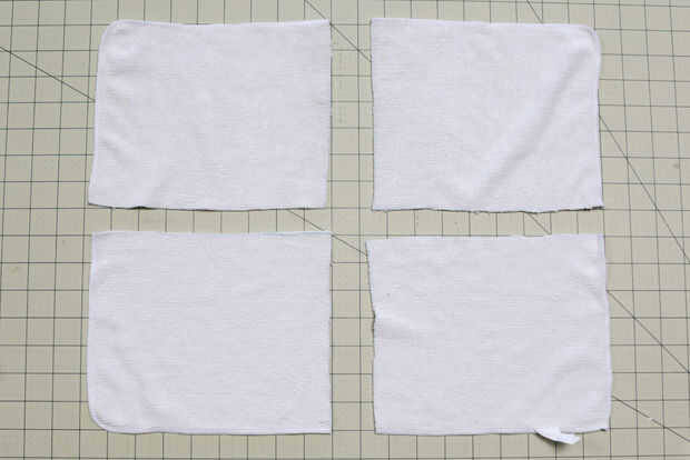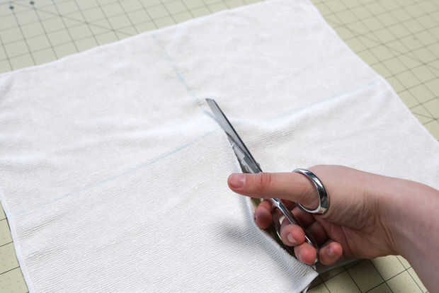 Corte a lo largo de las marcas en la toalla para hacer cuatro de igual tamaño plazas.