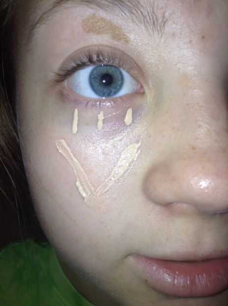 Para este paso usted poner el corrector en medio de tres puntos bajo el ojo y un pequeño triángulo debajo de eso.