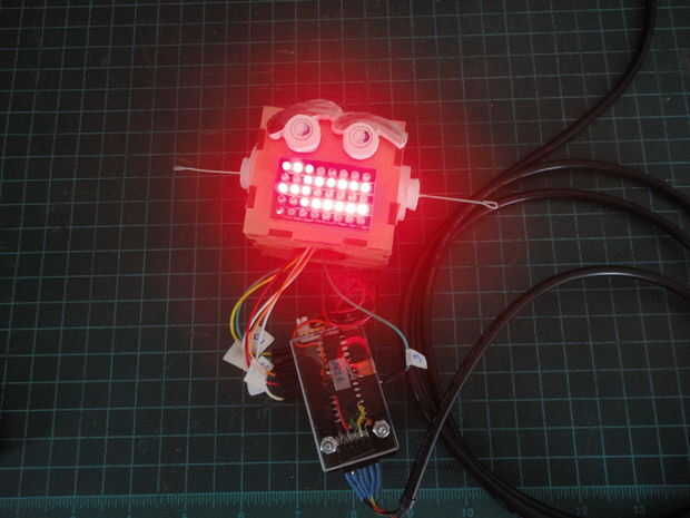 El desafío es poner 40 LEDs, tres TLC5940NT, buena cantidad de cables para conectar todos los LEDs a ICs en un 5x5.5x6cm. Cuadro acrílico (cabeza de Robot).