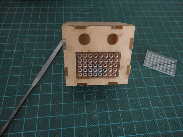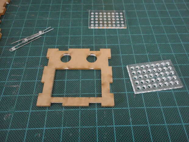 Hay dos piezas de rectángulo que tiene 40, agujeros de 3mm de diámetro, sobre ellos. Uno es cortan a través, el otro es solamente tiene las marcas de etch. Estos dos son para las instalaciones de LEDs.