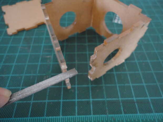 Usé la aguja archivo abajo todas las muescas en cada piezas para hacerlas encajar.