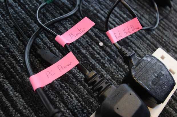 Agarra algunos de esos papelitos y ponerlos a trabajar. Cortar en finas tiras y pegarlas sobre los cables de alimentación para asegurarse de que no perder trabajo un día completo de tratando de desconectar un ventilador! Anote que enchufe es que, o tomar diferentes colores papelitos para cada enchufe que tiene.