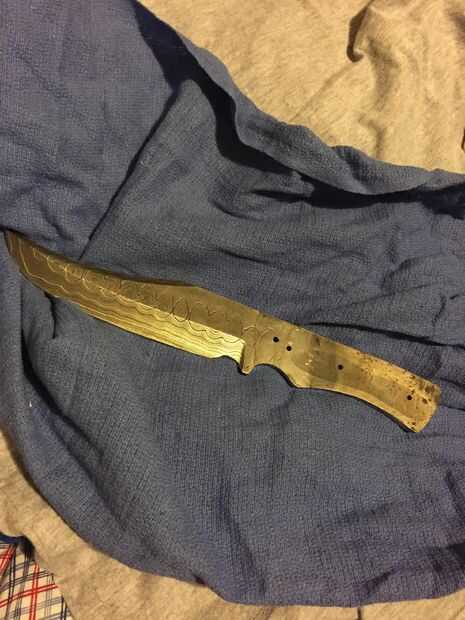 Este cuchillo estaba hecha de acero al carbono 1075 con una manija de burl coolabah.Paso 1: corte Encontré un diseño que me ha gustado y puño copiarla en algún cartón para obtener la sensación del cuchillo. Después de hice algunos pequeños ajustes en