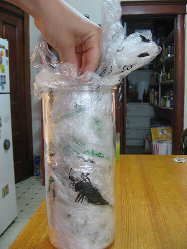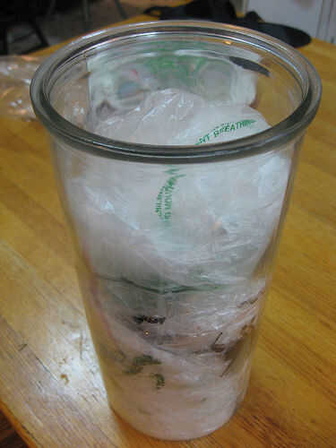 Las bolsas sin aire en el contenedor de la materia. Simplemente divertirse con él, meterse allí.