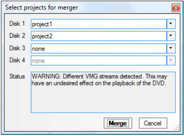 4. Seleccione "herramientas", "Merge DVDs..." y te sale una ventana para confirmar el proceso de fusión (cuarta foto). Prensa «Fusión». Esta parte del proceso es muy rápida.