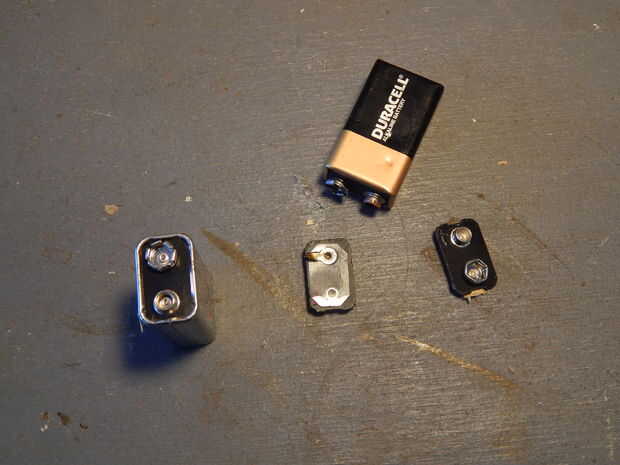 a salvar los clips de un par de pilas para hacer un cable con pinzas en ambos extremos.  Un clip sale el clip en el metro, el otro a la batería.  Si usted busca instructables para "clip de la batería de 9 voltios" usted encontrará que el salvamento es un asunto frecuente en instructables.  Un ejemplo es: Cómo hacer un conector de 9 voltios por zelda81596
