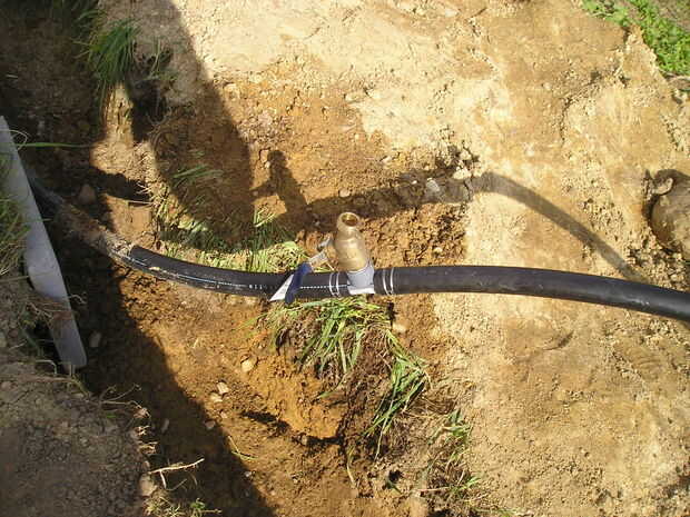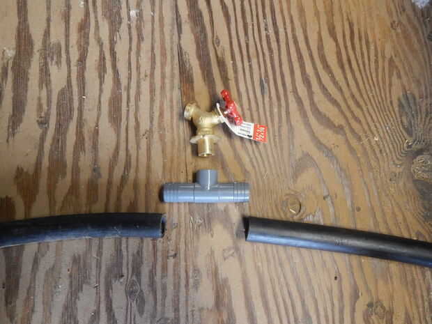 A lo largo de la longitud de la tubería que desea instalar válvulas y grifos. Cuando quiero una boca de riego instala una camiseta de combinación. Tiene 2 conectores de 1 pulgada para el tubo y un ¾ hilo de rosca de la manguera. Puede ser difícil conseguir la t en el tubo. Poco de jabón en la conexión, ayuda pero mi "bien hombre" siempre utiliza un soplete de propano, por lo que hacer demasiado. Sólo suavizar el tubo, no te quemes.