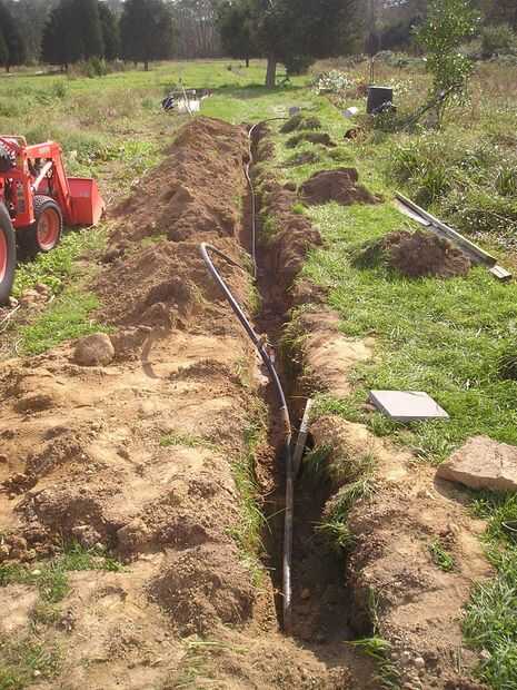 Desenrolle el tubo y ponerlo en la zanja. Quiere rodarla hasta pesar otra vez tan abajo con algunas rocas. Trabajé desde la fuente de agua hasta el final, esto hace más fácil a medida que avanza la prueba.