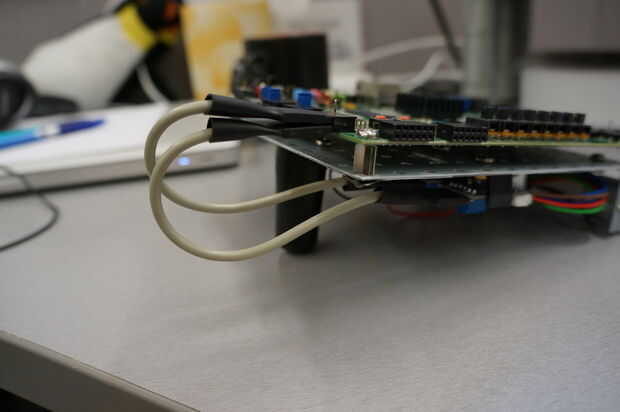 Utilizar dos cables de 6 pines para conectar los dos módulos HBridge para el Zedboard. Conecte el HBridge controlando el motor izquierdo de la fila inferior de pins en PMod JC1, asegurándose de pin1 del módulo HBridge conecta JC3_P. conectar el HBridge controlando el motor derecho de la fila superior de pins en PMod JC1, asegurándose de pin1 del HBridge módulo conecta con JC1_P.