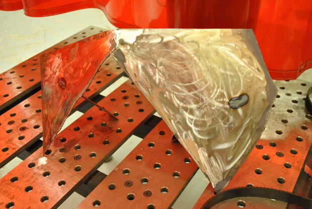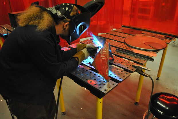En mi primera iteración de este proyecto que he creado el soporte después del hecho, y cuando soldó con autógena la base a la imagen, dañar la impresión. Porque yo soy útil haciendo estos áspero, no es el fin del mundo. Sin embargo, siempre construir la porción del metal completamente antes de aplicar la imagen. Ésta es la porción que requeriría la SBU en TSSJ de soldadura MIG. Después de configurar la máquina según se indica en la clase, prepare su trabajo cómo desea soldados. Antes de soldar la mayoría, hacer un par de soldaduras de virada rápida para conseguir comenzó. Desde allí he volteado sobre el trabajo y había soldada en su cara por lo que es más estable.