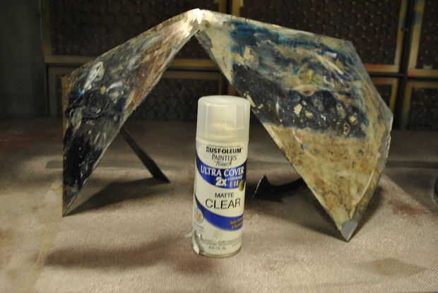 De aquí encendido hacia fuera de todo, hay muchas maneras de terminar esto pero yo creo que el más eficaz es en claro la capa. Esto seguramente hace que la imagen estable. He utilizado la capa transparente de tapa Rustoleum Ultra, comprado en un almacén del hardware típico. Ahora la lata de capa clara es mate. Esto es perfecto para la parte trasera de la pieza, para preservar ese aspecto inmundo rústico. Sin embargo he aprendido que usar brillo para la parte de imagen real es perfecto! En total utilicé unos 5 o así que capas en la superficie final, esto da la imagen un brillo líquido que es extrañamente fresco.