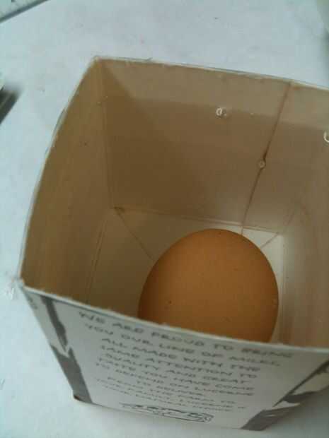 Para medir el agua necesario tomar el cartón de leche, nuestro molde y ponga el huevo en ella. Ahora llene con agua a aproximadamente media pulgada del borde. Ver la primera foto. Esto es la cantidad exacta de agua necesaria. Saque el huevo y ponerlo en lugar seguro.