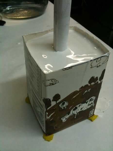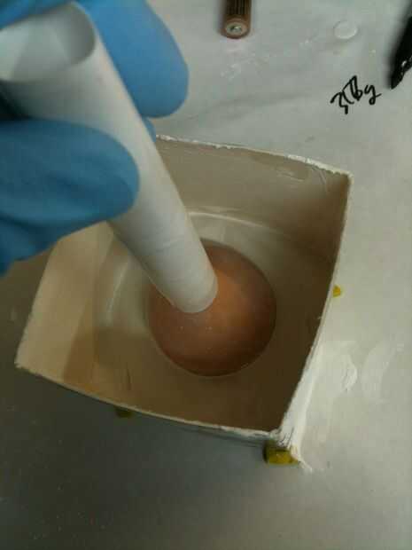 Haz tubo como lo hicimos en el paso 2 y manténgalo en la parte superior del huevo como se muestra en la foto. Una vez tienes el tubo lugar cómodamente y con seguridad Vierta el yeso en el molde. Asegurar los flujos de yeso líquido para todos los lados lo más uniformemente posible. No tiene que ser absolutamente perfecto.